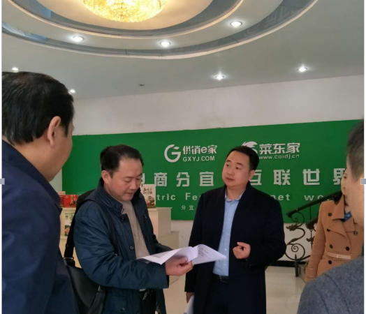 2017年12月13日,省工商局商標(biāo)局副調(diào)研員晏仟生、省國稅局科員鄧志堅(jiān)、南昌海關(guān)副主任科員陳靜帶領(lǐng)省打擊侵犯知識(shí)產(chǎn)權(quán)和制售假冒偽劣商品工作督查組,在新余市商務(wù)局副調(diào)研員簡連根、市商務(wù)局市場秩序科科長彭鋒、市商務(wù)局市場秩序科袁青義、王娟及分宜縣政府副縣長黃邕斌、分宜縣商務(wù)局局長汪建華、分宜縣市場監(jiān)督管理局局長辛清龍、分宜縣商務(wù)局副局長郭見虹等人陪同下,蒞臨江西菜東家電子商務(wù)有限公司總部進(jìn)行檢查調(diào)研。 -